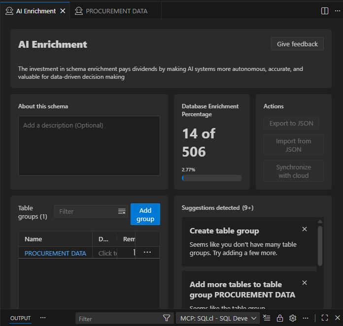 Note that the SQL Developer plug in for VSCode provides a rather nice interface for AI data enrichment.